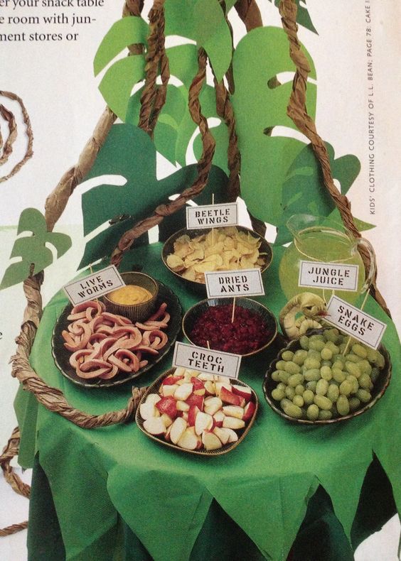 On peut même s’amuser à transformer le raisin en oeuf de serpent, les quartiers de pommes en dent de crocodile… Les enfants en mangeront deux fois plus 🙂 J’ai trouvé cette idée, ici.