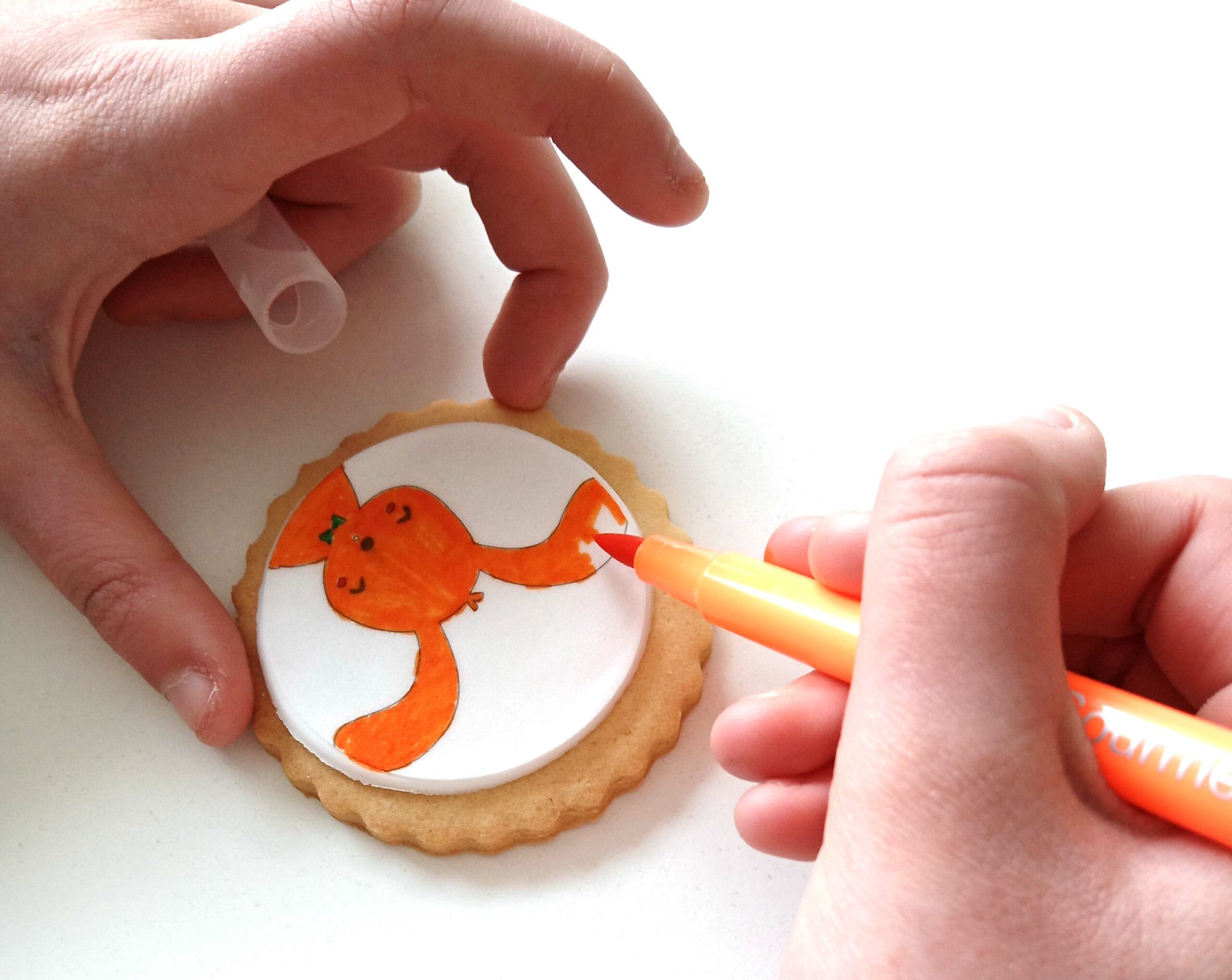 Ou bien, craquez pour les biscuits à colorier ! Ce sont des biscuits sur lesquels j’imprime un dessin (que j’ai imaginé moi-même). Ils sont livrés avec des feutres alimentaires. Les enfants n’ont plus qu’à les colorier avant de les savourer 🙂