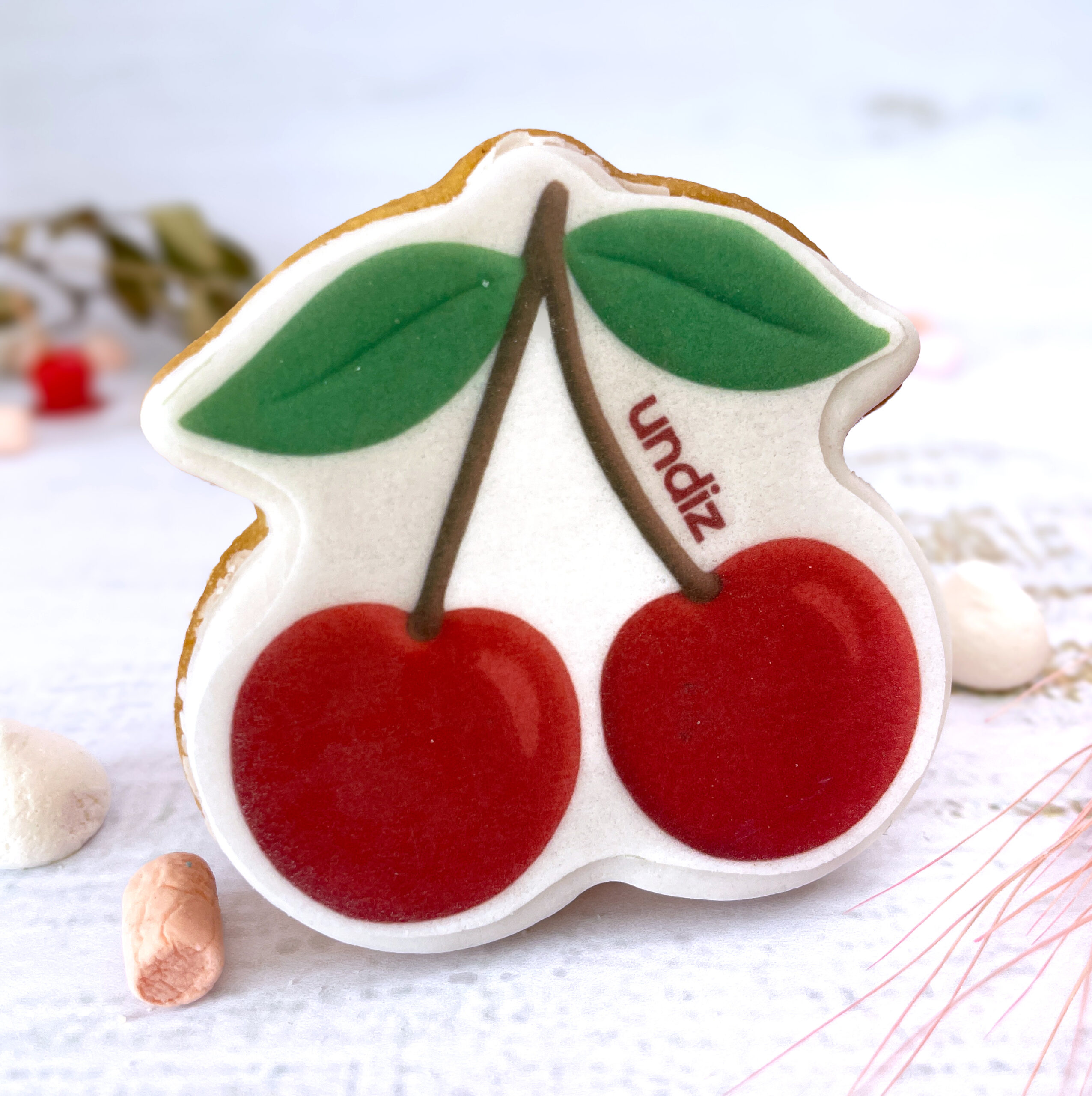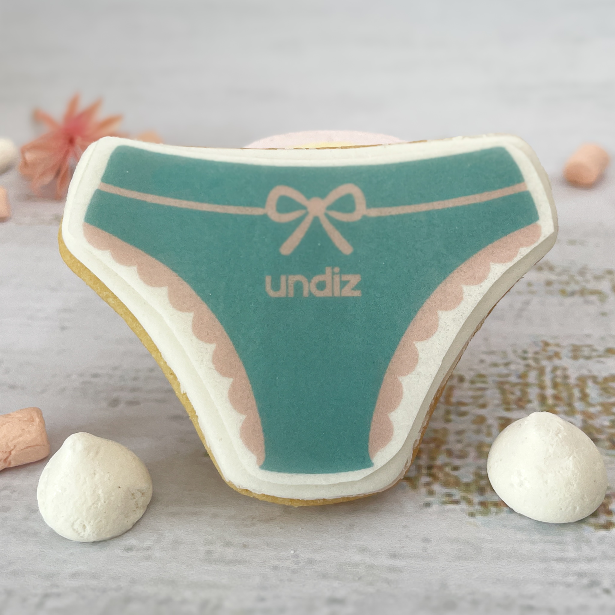 Début septembre, la boutique parisienne Undiz a rouvert ! Pour l’occasion, Lilou, chargée de marketing opérationnel, m’a contactée pour savoir s’il était possible de réaliser des biscuits inspirés de leur nouvelle collection. À savoir : une culotte (impossible de s’en passer quand on vend des sous-vêtements, et puis c’est tellement fun), des cerises, un nœud rose et un dernier biscuit avec uniquement leur logo.